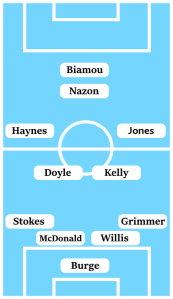 Given the likelihood that we’ll be defending for extended periods in this game, it could be an idea to play Ryan Haynes as a winger rather than a full-back and bring the sturdier Stokes in at left-back. While there is a difference between the qualities required to make a good attacking full-back and a good winger, Haynes ability to beat players for skill and travel in multiple directions make him more of a natural fit for a more attacking berth than the typical full-back.