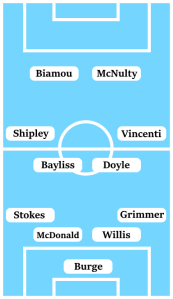 The two main positives to take from last Saturday was the performance of Tom Bayliss in midfield on his league debut and the movement of Maxime Biamou and Marc McNulty in attack. Bayliss looks the next in succession of highly-comfortable ball-playing midfielders this club is producing by the spadeload at the moment. As for Biamou and McNulty, while their finishing left plenty to be desired, they consistently put themselves in positions to get lucky with the kind of finish that McNulty eventually produced for the winning goal – that has to be seen as encouraging.