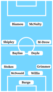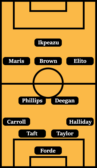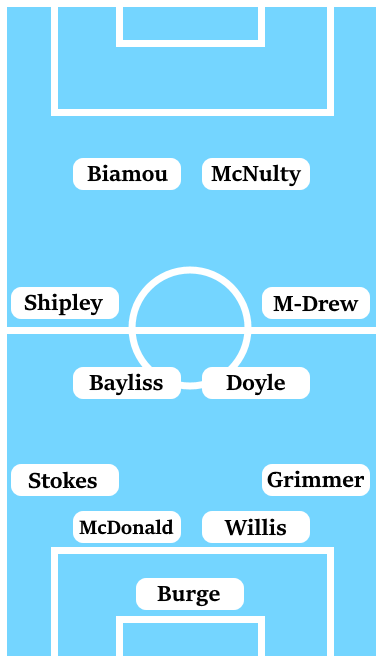 The wide player conundrum is added to after Tom Bayliss demonstrated on Saturday that he is more than capable of being effective while played on the right. The freedom from defensive responsibilities gave Bayliss further licence to push forward, while allowing Mark Robins to bring Liam Kelly back into the side. With Kelly being unable to last the 90 minutes on Saturday though, it wouldn’t be a surprise to see Bayliss pushed back into a central position.