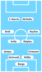 The second task is to find the right balance in attack to give us a threat on the counter. Recent team selections with Jordan Shipley, Tom Bayliss, Josh Barrett, and Peter Vincenti in wide positions have robbed us of pace on the break, which has placed the attacking burden on Maxime Biamou winning headers and Marc McNulty conjuring a finish from somewhere. Kyel Reid’s reintegration into the first-team provides pace and direct running from out wide, while Jonson Clarke-Harris provides a more mobile, less aerially dominant but potentially more prolific strike partner to McNulty than Biamou does.
