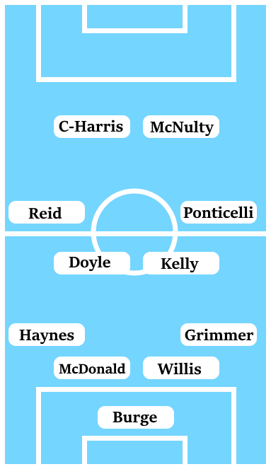 Mark Robins intimated that the formation involving Jordan Ponticelli and Marc McNulty deployed as wingers and Tom Bayliss looking uncomfortable being played further forward was something that had been designed specifically with Crawley in mind. It may be the case that it was a one-off team selection, however, it’s hard to see how Robins can drop Ponticelli after his brace against Crawley while also having Marc McNulty, a target man, Tom Bayliss, and Doyle and Kelly in midfield, which seem to be his preferred options.