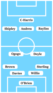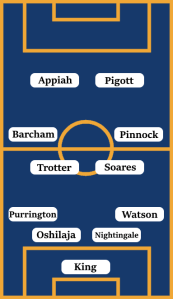 Whether Robins then tweaks the attacking line-up will be interesting to see. The signing of Amadou Bakayoko provides the manager with yet another attacking option, however, the temptation to chop and change threatens building fluidity as an attacking unit. Tony Andreu and Tom Bayliss seem like certain starters, there is then probably a choice between Jordy Hiwula or Jordan Shipley – pace or defensive cover – on the left while the lone striker – presuming Robins goes for a 4-2-3-1 – could be easily one of three or four players.