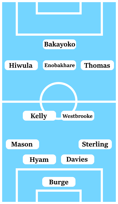 Zain Westbrooke and Jordan Shipley are the prime candidates to come into the side alongside Liam Kelly, although an ambitious option could be to start Bright Enobakhare in Bayliss’ deeper role and bring Conor Chaplin into the side as a strike partner for Amadou Bakayoko. Given what we know about Mark Robins, and with Westbrooke ear-marked as Bayliss’ long-term replacement, the former Brentford youngster seems the most likely to get the nod.