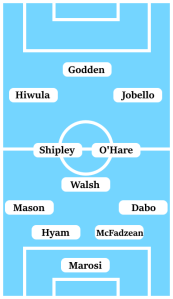 With Gervane Kastaneer still looking too untamed a talent to play a starting role, and the possibility of bringing in Amadou Bakayoko or Maxime Biamou likely to involve a change of system that would upset the functioning midfield dynamic we have, Robins is likely to persist with the current attacking formula for the foreseeable future. One tweak might be to push Callum O’Hare further forward and Jordan Shipley back into a midfield pairing with Liam Walsh, but that again runs into the issue of upsetting the midfield.