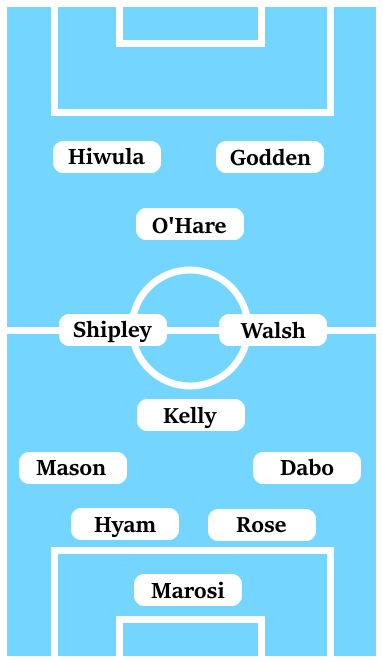 Liam Kelly playing the holding role and Jordan Shipley on the left side of the diamond seem pretty nailed-on, leaving it between Liam Walsh and Zain Westbrooke to play on the right. Walsh may have been brought in as the back-up for Kelly at the base of midfield, but he has shown signs that he probably has more to offer further up the pitch than in the defensive third, which, for me at least, would make him the better option than Westbrooke for that remaining midfield slot.