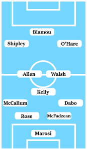 The dynamism of a potential front three of Maxime Biamou, Callum O’Hare and Jordan Shipley will be important in avoiding the team sliding into sterile possession. Knowing that the deeper midfield three of Jamie Allen, Liam Walsh and Liam Kelly can break up the play and take care of the ball should provide Shipley, O’Hare and Biamou with the impetus to make runs in behind the opposition defence. Additionally, with Maxime Biamou among the goals since his return to the starting line-up, we may just have that penalty area presence we’ve been missing since Marc McNulty’s departure two summers ago.