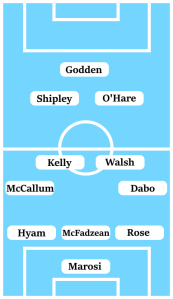 There is unlikely to be any changes to the side that beat Doncaster Rovers last Saturday. The one area for consideration may have been introducing the more industrious Jamie Allen into the midfield unit ahead of Jordan Shipley in order to give the side extra energy without the ball and in transitions, however, the latter’s winning goal last week makes it difficult to justify dropping him – not least because Shipley is increasingly getting a reputation for performing on the big occasion.