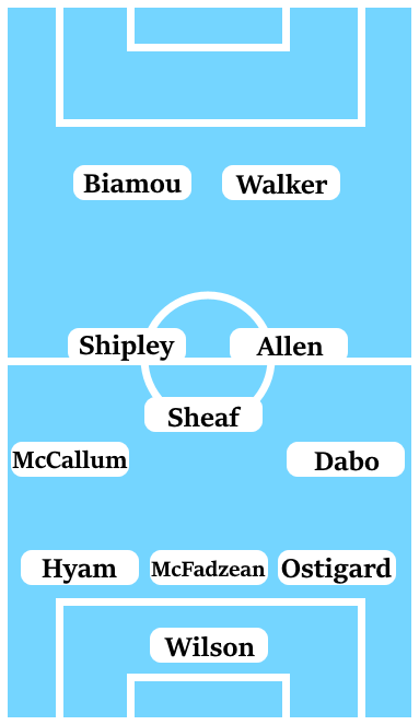 With Liam Kelly also injured, it puts a lot of the burden of responsibility in midfield on the shoulders of Ben Sheaf – who has shown he is a talented player but doesn’t seem to possess the same level of character and presence as the two players he’s being asked to replace. The work-rate of Jamie Allen is going to be important in lessening the burden on Sheaf. There is then a decision to be made over whether to restore Jordan Shipley to the side to make it a midfield three or to go more attacking with Callum O’Hare.