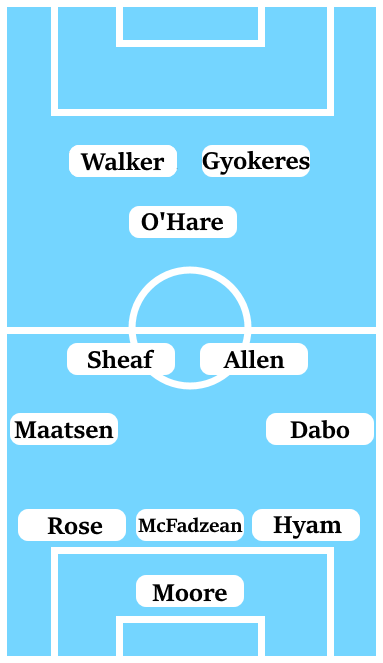 Moving to a midfield trio could overcome the technical and emotional loss of Hamer, with Liam Kelly returning to provide a steadying presence in the centre of the park, freeing Ben Sheaf and Jamie Allen to focus on offering the quality in possession. However, that would likely necessitate taking Callum O’Hare out of the side, which is why the Sheaf-Hamer direct swap looks to be the decision Mark Robins will make.