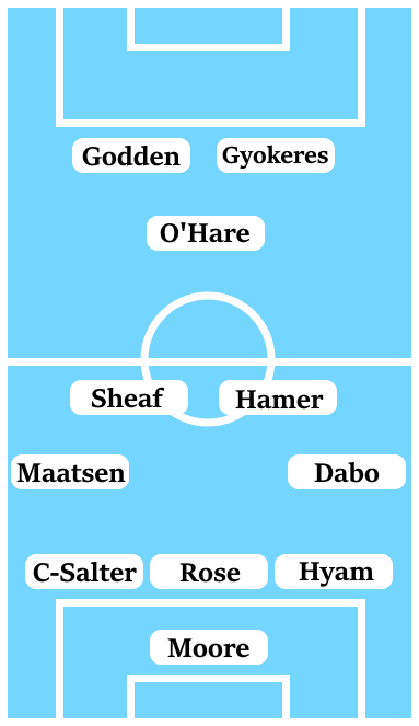 In defence, Kyle McFadzean’s possible absence means that it will be a back three of Dominic Hyam and Jake Clarke-Salter either side of Michael Rose. Meanwhile, at wing-back, Fankaty Dabo and Ian Maatsen are the team’s only options.