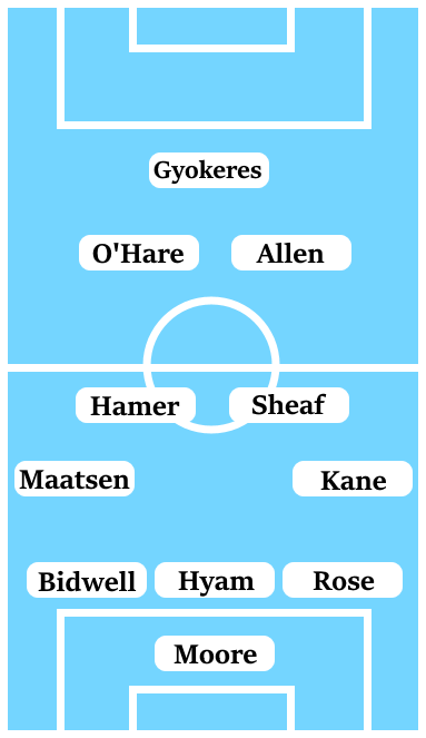 The template for this game for Coventry City, provided they can settle into it, will likely surround breaking from deep. With that in mind, deploying Ian Maatsen further forward to utilise his pace on the counter may be a consideration for Mark Robins – although, just who plays at left wing-back in that instance may make such a call difficult. If not Maatsen, then the ability of Viktor Gyokeres and Callum O’Hare to get Coventry City up the pitch, with Gustavo Hamer providing the service, will be vital in turning what are likely to be long portions of defending into attack.