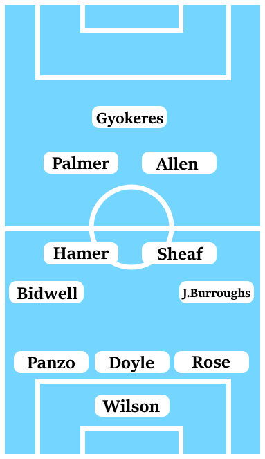 Kasey Palmer looks the likeliest to step into the fray, however, there remains the concern with him that he isn’t capable yet of lasting 90 minutes. While Martyn Waghorn provides an alternative, that it would involve a tactical alteration makes Palmer the preferred option here. This is a big opportunity for Palmer to demonstrate that he can affect and win games for this team.