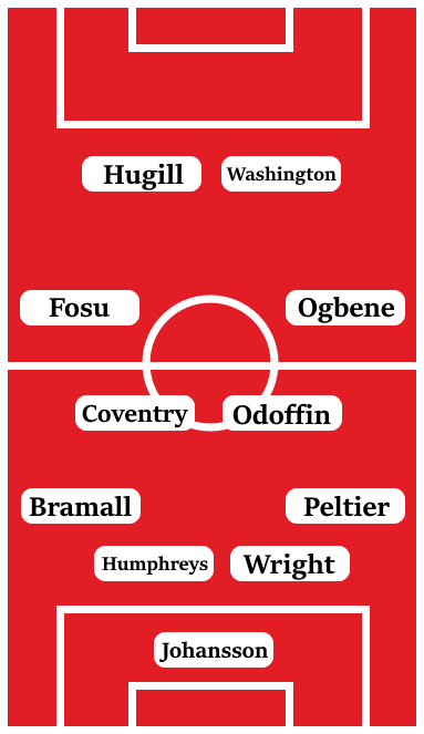 The Sky Blues should have the physicality at the back to stymie the threat of Rotherham United’s strike duo, Conor Washington and Jordan Hugill, the main defensive concern is how counter-attacks are defended against. In particular, Rotherham’s two quickest players – Tariqe Fosu and Cohen Bramall – are on their left-side, leaving Brooke Norton-Cuffy with the task to be wary in his positioning or risk being caught out against his former club.