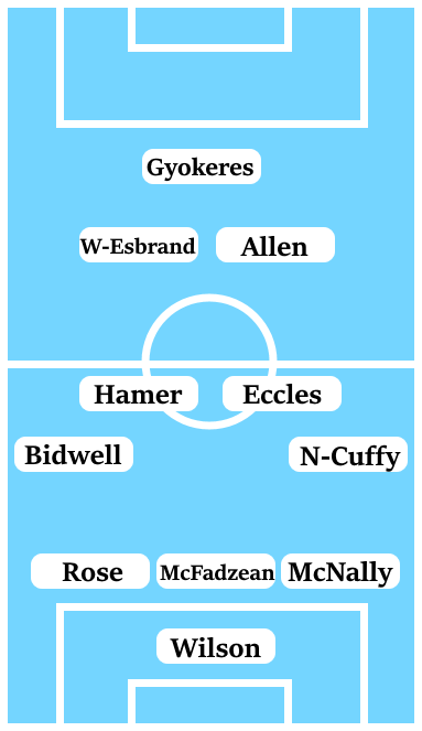 If neither Kasey Palmer nor Matt Godden are realistic options to start this game, it leaves Tyler Walker, Sean Maguire or Josh Wilson-Esbrand competing for the remaining attacking position in the side. With Walker and Maguire having played precious little football in a Coventry City shirt this season, it seems as if Mark Robins will prefer the option to play neither, providing Josh Wilson-Esbrand with a chance to make amends for getting sent off in his last starting appearance for the club, albeit in an alien position to him.