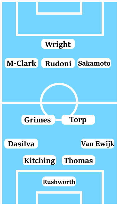 Elsewhere, much of the rest of the team picks itself, with Ephron Mason-Clark and Tatsuhiro Sakamoto returning to their wide berths despite impressive midweek displays from Kai Andrews and Raphael Borges Rodrigues in their respective positions. Additionally, Matt Grimes will pair Victor Torp in the middle of the park and Jay Dasilva will resume his place at left-back as Carl Rushworth returns in goal.