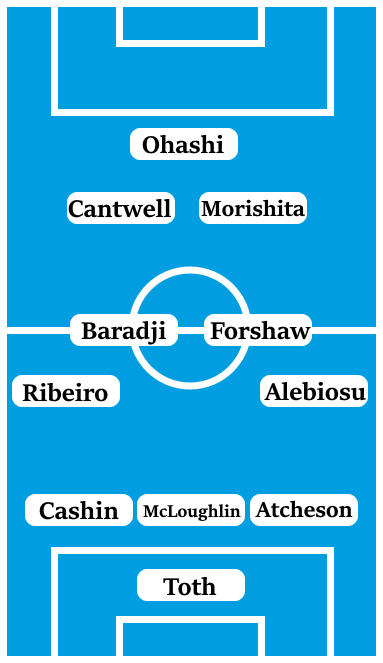 A return for Tatsuhiro Sakamoto would be mightily welcome in helping balance the forward line, providing another creator to balance out those looking to get on the end of chances. However, the prognosis doesn’t look good for the Japanese winger. Instead, starting Romain Esse is probably the right call here, as someone who can pick up space and find a pass against tight defences, leaving Brandon Thomas-Asante available to make a difference later on when his pace can really be a problem.